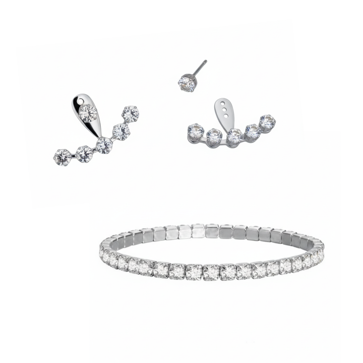 Tennis Sparkle Silver Set - 1 Bracelet, 1 Detachable Earrings